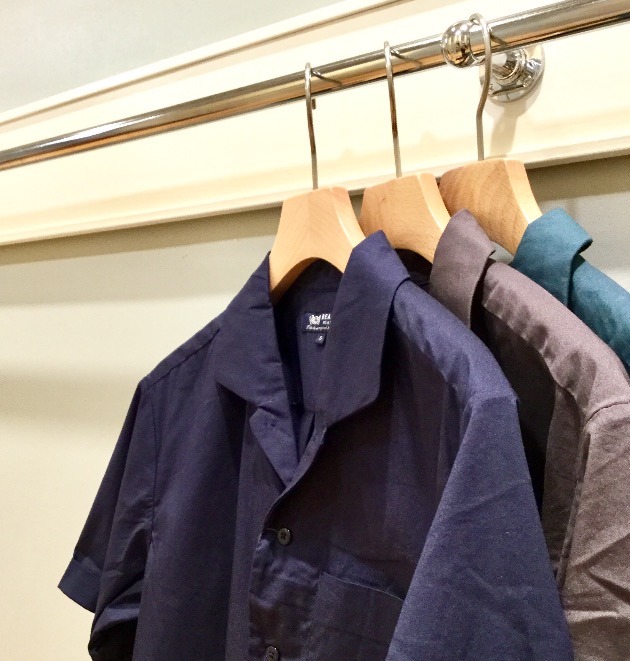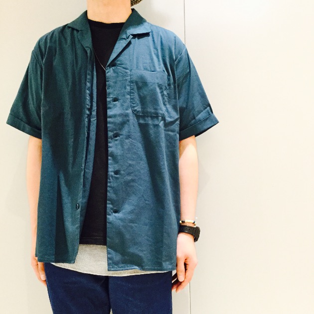 シンプルなオープンカラーシャツです。素材は珍しいハイカウントのストレッチコットンナイロンを使用しております。ナイロンが含まれる事で生地に微妙な光沢感が生まれ、非常に上品な仕上がりとなっております。