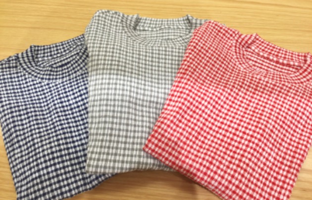 表面が楊柳の凹凸感があるカットソーのギンガム素材を使用した5分袖のトップスです。