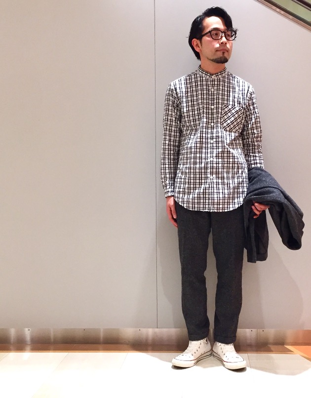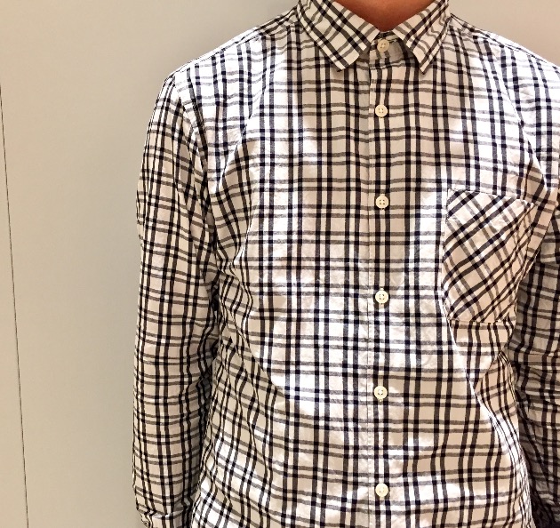 シンプル&ベーシックでクリーンイメージのチェック柄を上質なブロード素材に落とし込んだ素材を使用したシャツです。衿の仕様に特徴があり、羽根衿を表側に出せばレギュラーカラーになり、内側に折り込むとバンドカラーに、と2通りの着こなしを楽しむことができます。羽根衿に芯地を入れていないため、バンドカラーにしてもごわつきが少なく、衿が表側に飛び出しにくい仕様となっております。