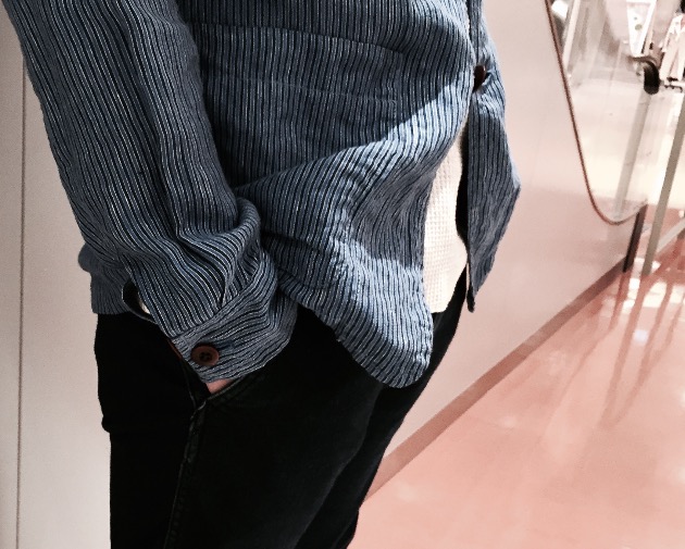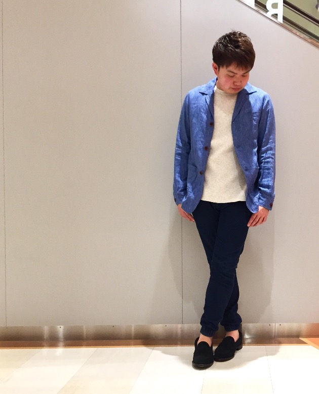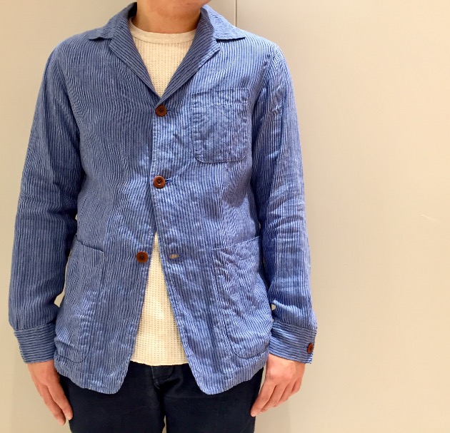 ブルーとネイビーの鮮やかなストライプで、素材はスラブ糸を使用したリネン100%のイタリアの生地を使用したジャケットです。リネン特有のシャリ感は清涼感を与え、スラブ調のラフさと、爽やかさの中にリラックスさを感じさせる仕上がりとなっております。シャツジャケットのような軽やかな着こなしを楽しんでいただけます。