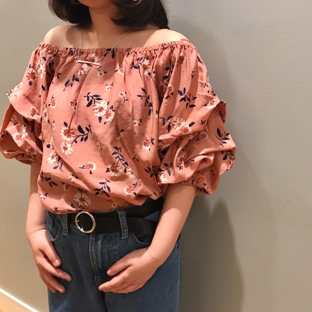 今季トレンドの花柄のオフショルダーのブラウスです。