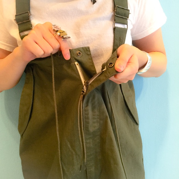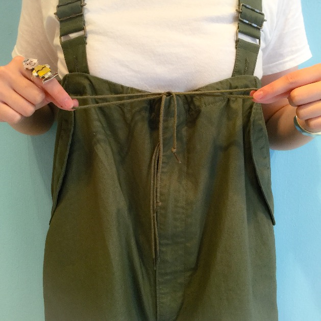 50年代から、60年代にかけてカーゴパンツの防寒、防風用として採用されていたカバーパンツです。M-65フィッシュテールパーカーなど共に着用する降雪地帯用の上ばきとなります。
