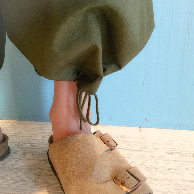 ウエストと裾は、ドローコード付きで調節可能となっています。