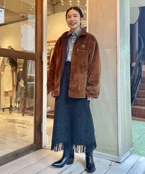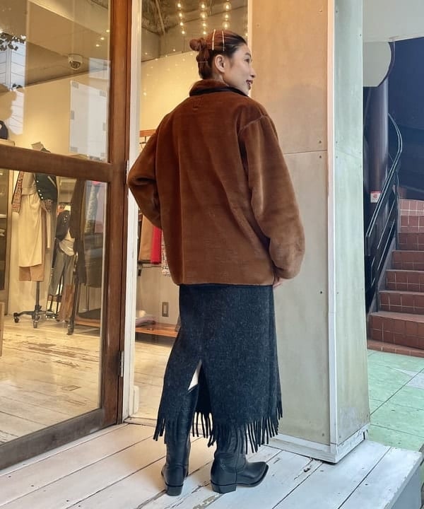 フリンジスカートに合わせた、女性らしいコーディネート!