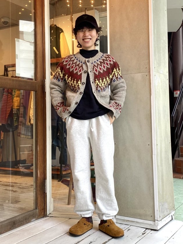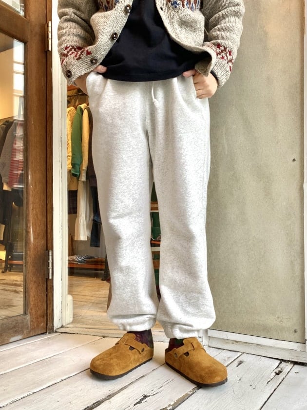 OATMEALのスウェットパンツと合わせて、ボストンにふさわしい、優しい雰囲気で合わせてみました!