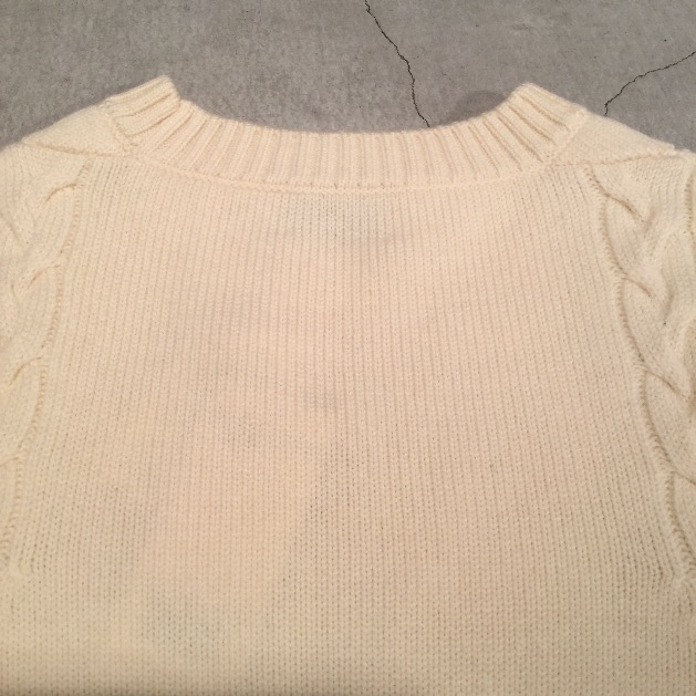 アームホール付近や裾に施された編み模様もそのままに。