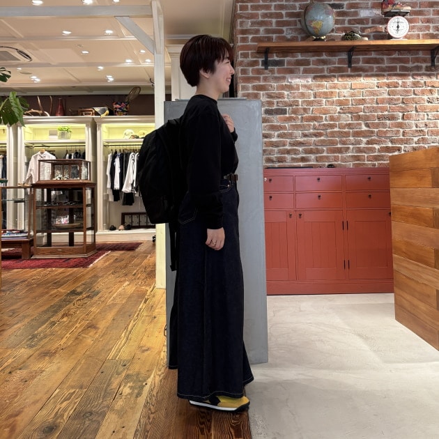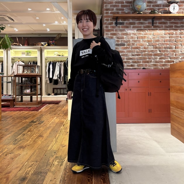 シューズのラインから色を拾って、ブラックのロンTを選びました。