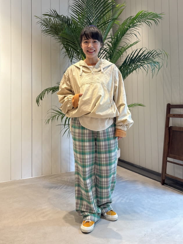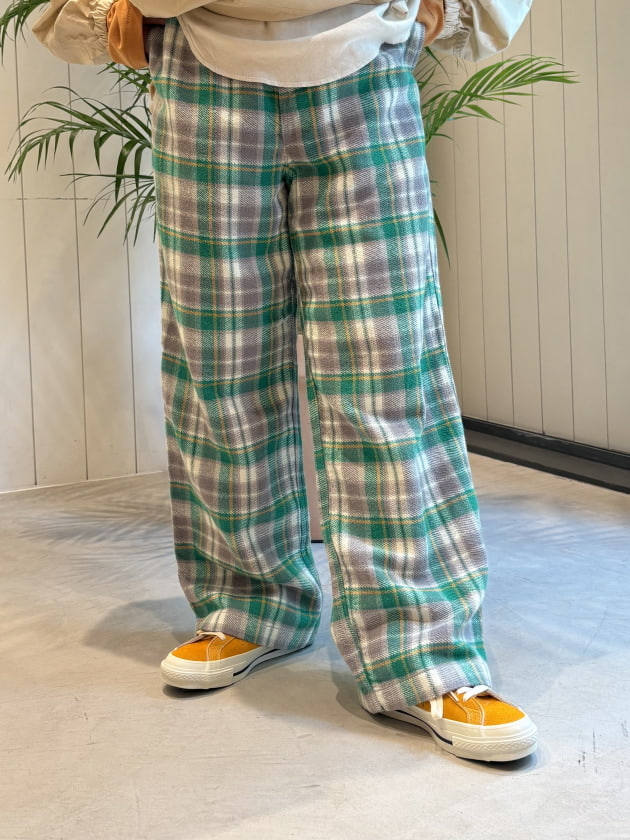 だぼっとしたワークチェックパンツをチョイスして