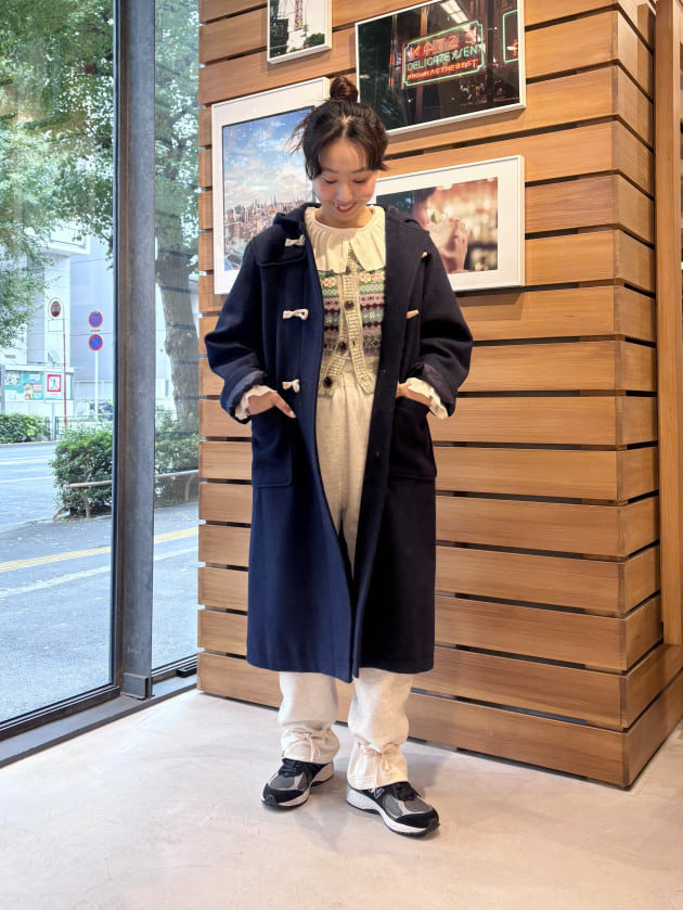 ダッフルコートにフェアアイル柄のニット♡なんとも冬らしいスタイリングに合わせています!