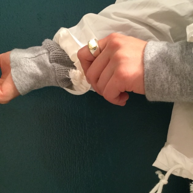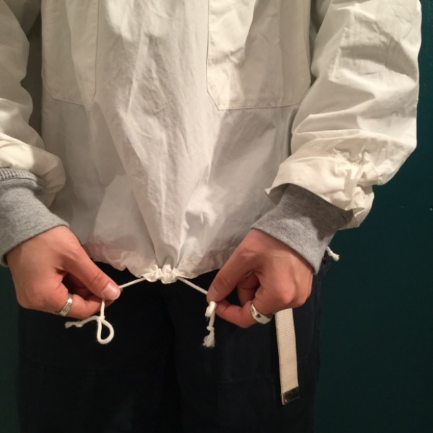 裾にはドローコードが付いているので、絞るとシルエットが変えられます。