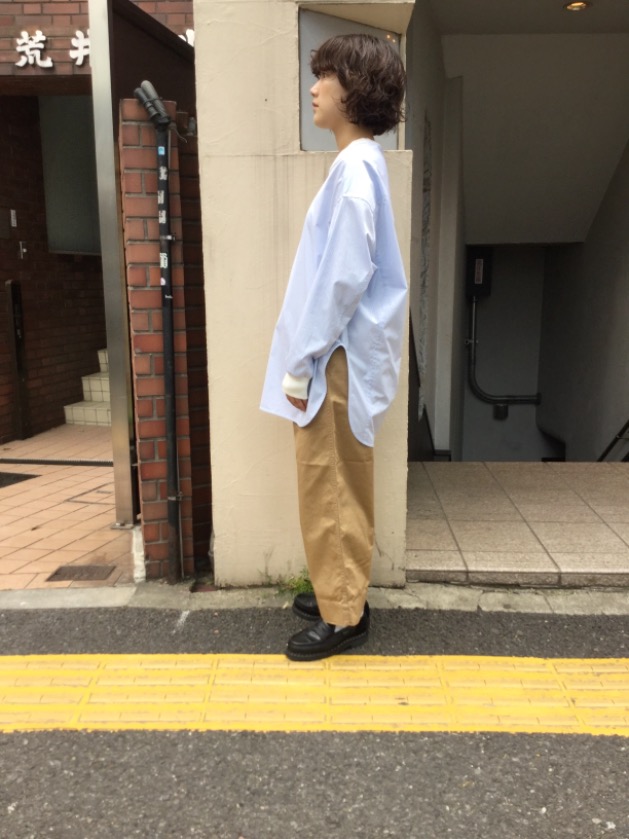 肩が落ちたシルエットで抜け感があり、