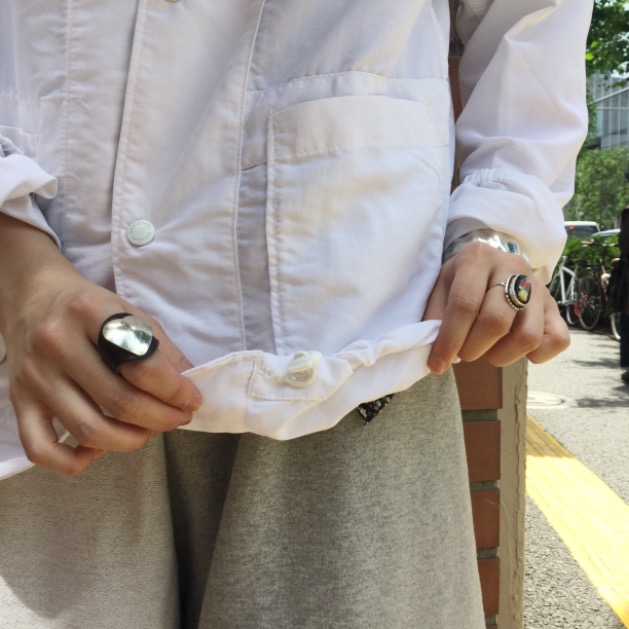 大胆にも、生地もステッチワークも裏返しで着たような