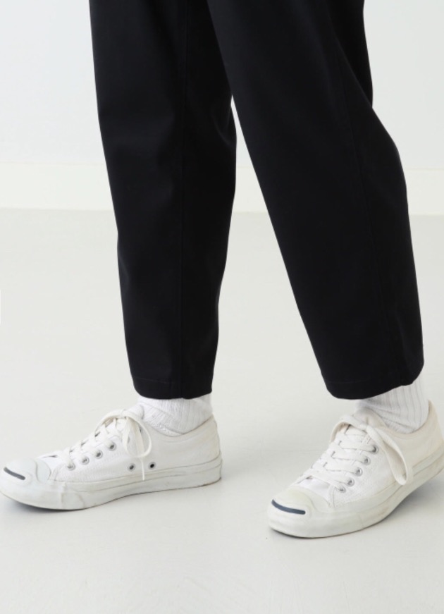 肌ざわりの良いギャバジン素材を用いたテーパードパンツが新しく登場!