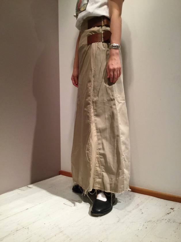 ユーズドのアイテムを解体し、一着のスカートに仕上げております。
