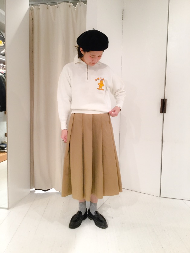 フンワリと広がるプリーツスカートとベレー帽で女の子要素と合わせて(^_^)