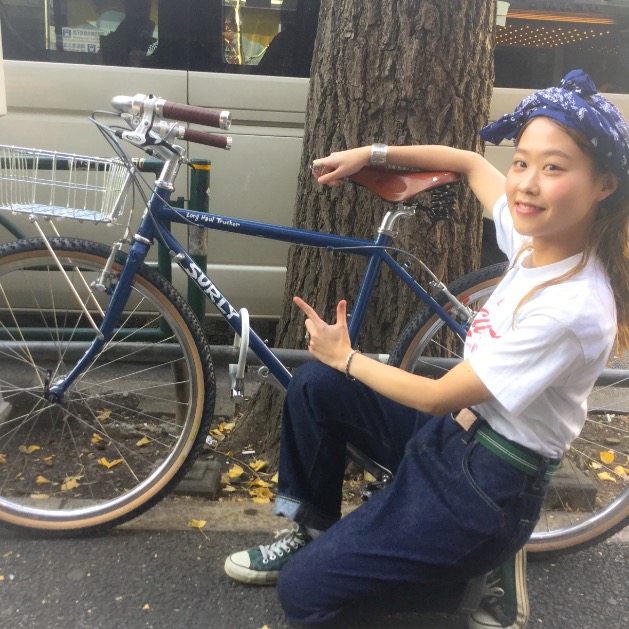「サドルとボディのカラーでクラシカルな雰囲気に。でも、タイヤをゴツくしメンズ的な要素を取り込みました!服で例えるなら、甘辛なコーディネートです★」との事。