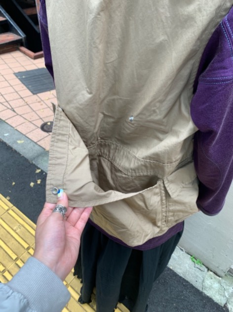 背面の大きなポケットは、ハンティングベスト特有のポイントですね。
