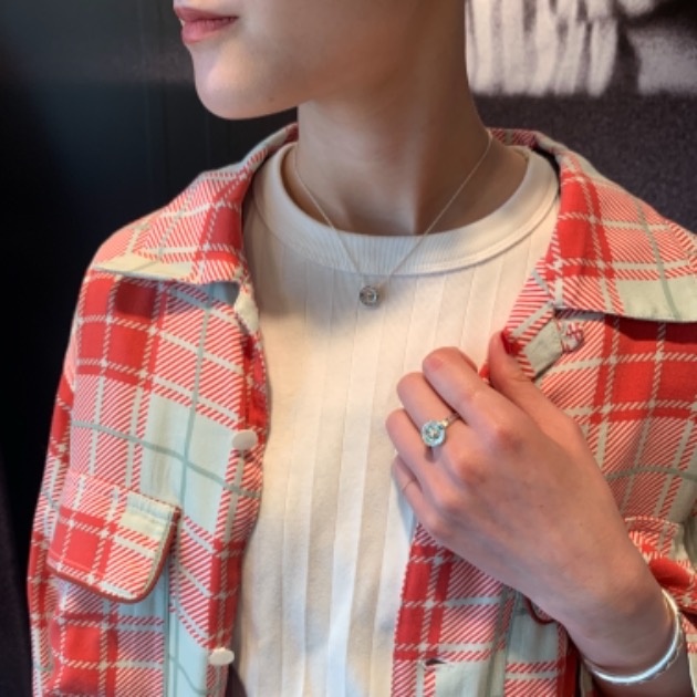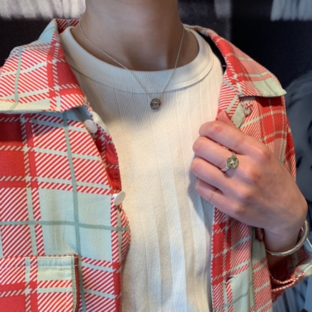 シルバー、ブラス共に同色でセット付けしても、ミックスしても可愛いネックレス、ピアス、リングの3種類でご用意しております。