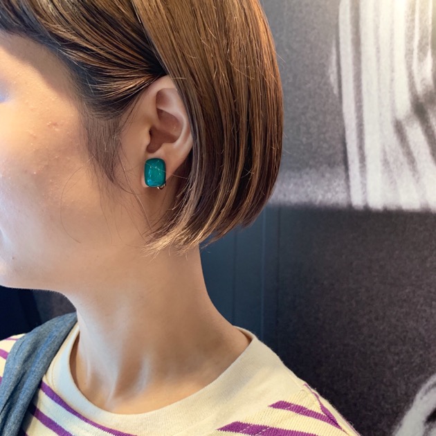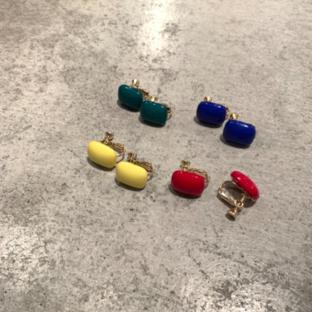 他にも、スクエアの形とパキッとしたカラーが印象的なイヤリング。
