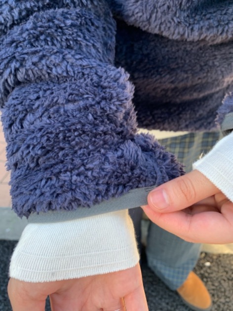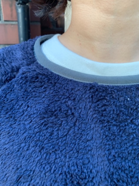 リサイクルポリエステルフリース素材のプルオーバー。