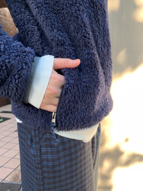 ジッパー式のハンドウォームポケットと、胸ポケットには小物の収納も◎