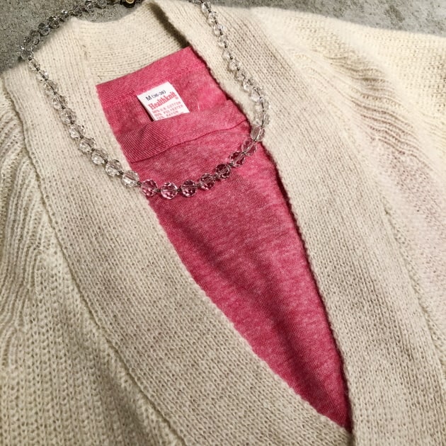 今時期は、ニットやスウェットのインナーにチラッと見せたり。