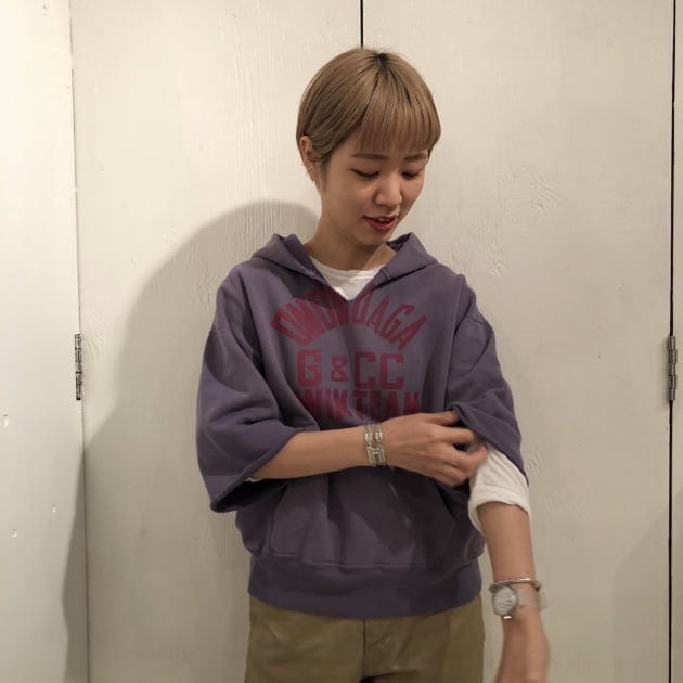今時期は、七分袖のカットソーなどを合わせるのもよしです。