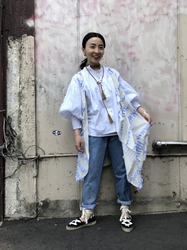 中に着たBEAMS BOY新作のブラウスもバルーンスリーブが華やかさをプラスしてくれますよ!