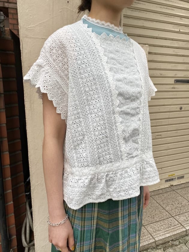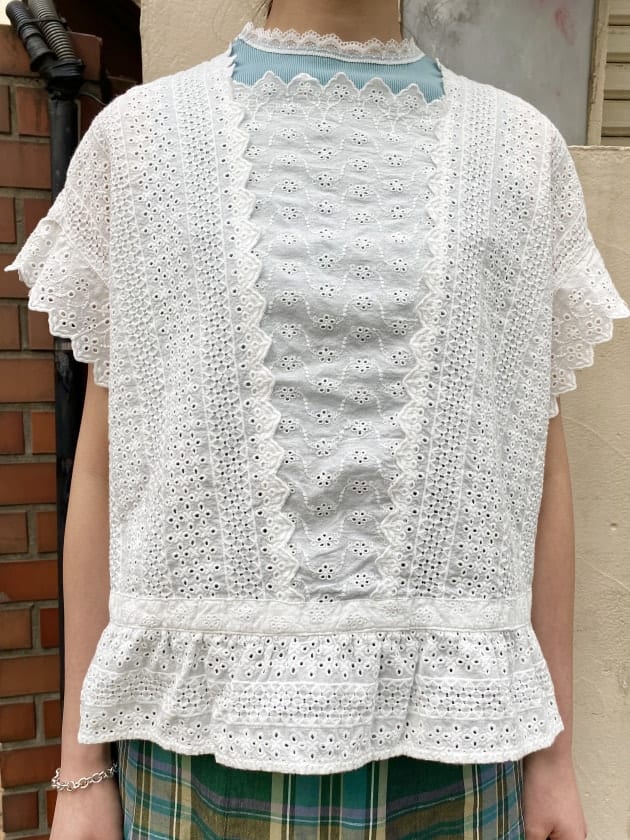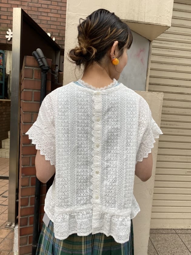 BEAMS BOY カットワーク スモック ショートスリーブ シャツ