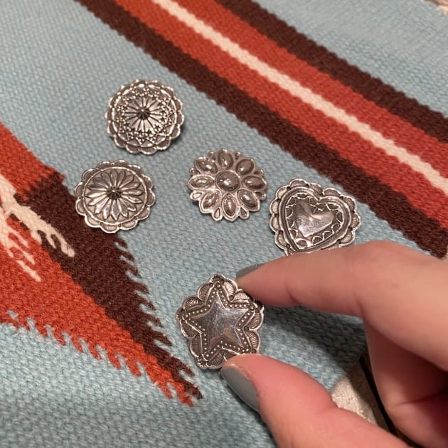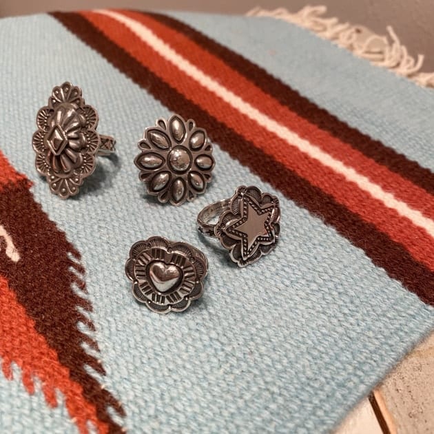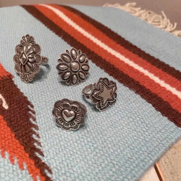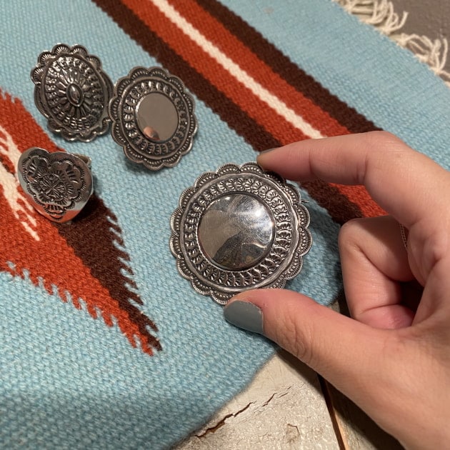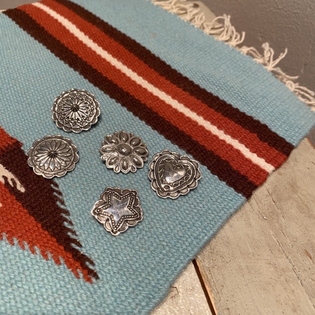 以前からお取り扱いのある、サークル型の大きめのコンチョピンや、リングも入荷しております!