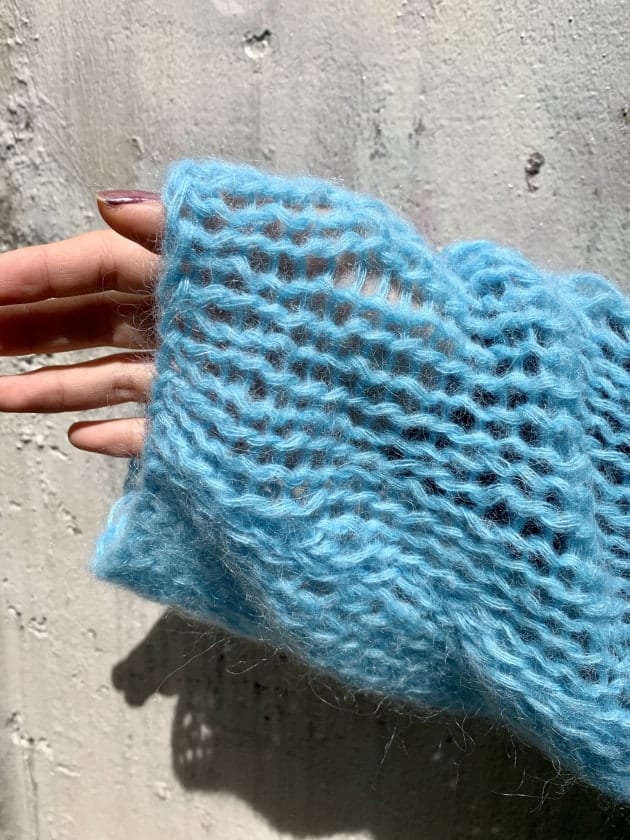 このニットはナイロンとモヘアとウールが混合されております!