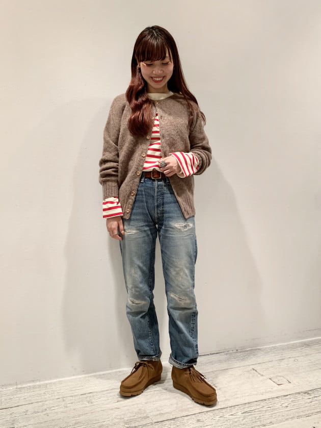 このように、クルーネックニットとカーディガンとの同色レイヤードも大変おススメです〜♡