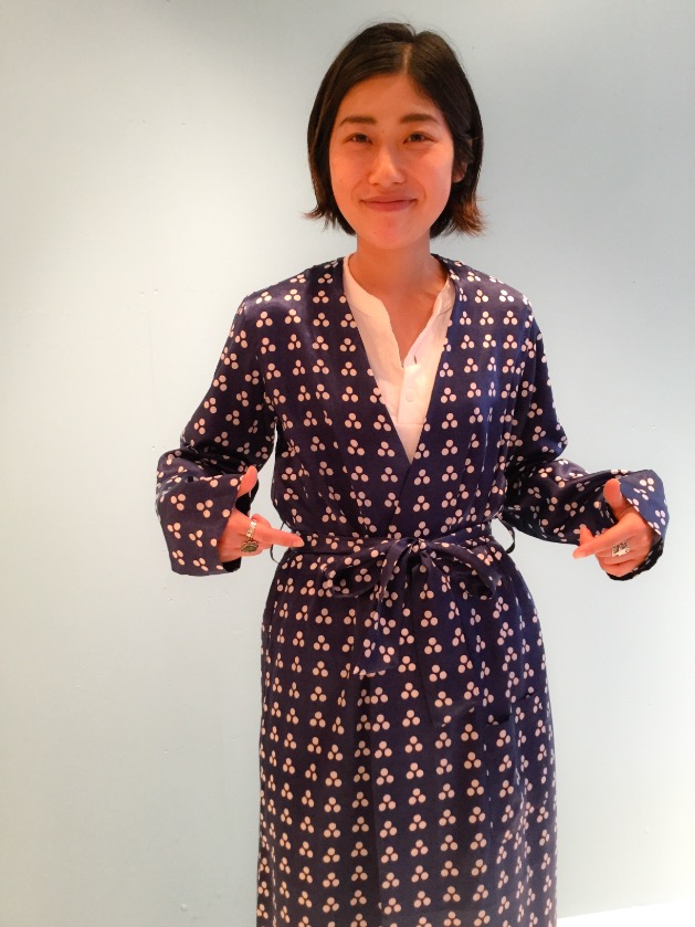 サテン地で、ガウン型で、総柄で、、、
