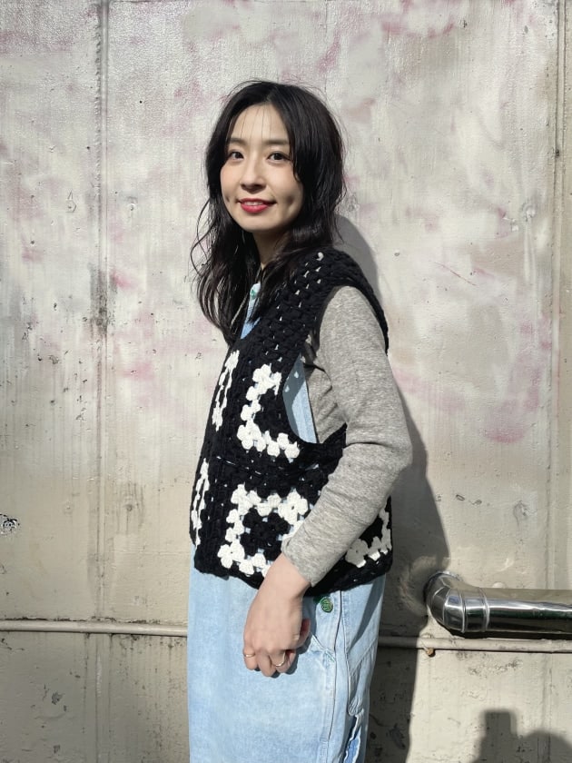 このように、ジャケットの隙間から見えるハンドクロシェットも愛おしい〜