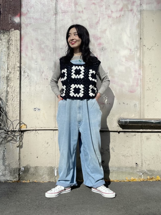 ブラックはシックに合わせても可愛いと思いますが、あえてダメージデニムに合わせて際立たせても良いかと!^^