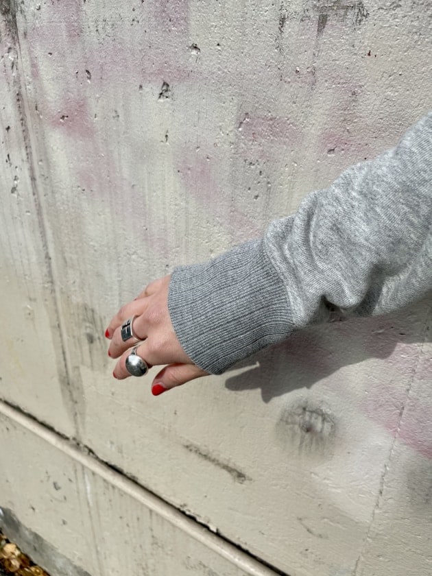 針抜きリブに、ビンテージ感漂う褪せたブラックのヘンリーネックを重ねて〜