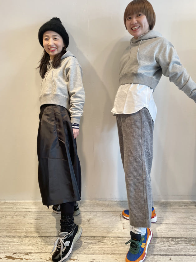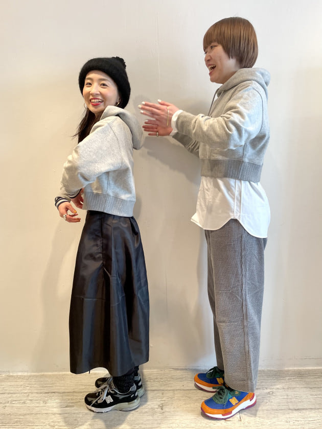 あえてグレーやホワイトで落ち着いたカラーでスタイリング〜!