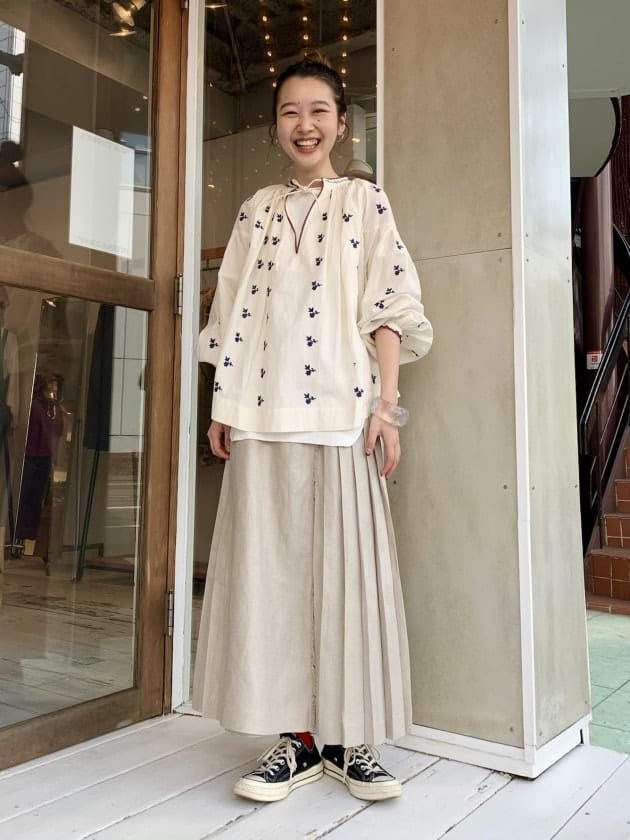 生地は透け感がありますので、インナーを変えて着れば雰囲気が変わり、着まわしが楽しいです。