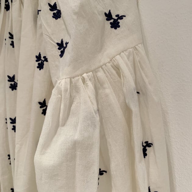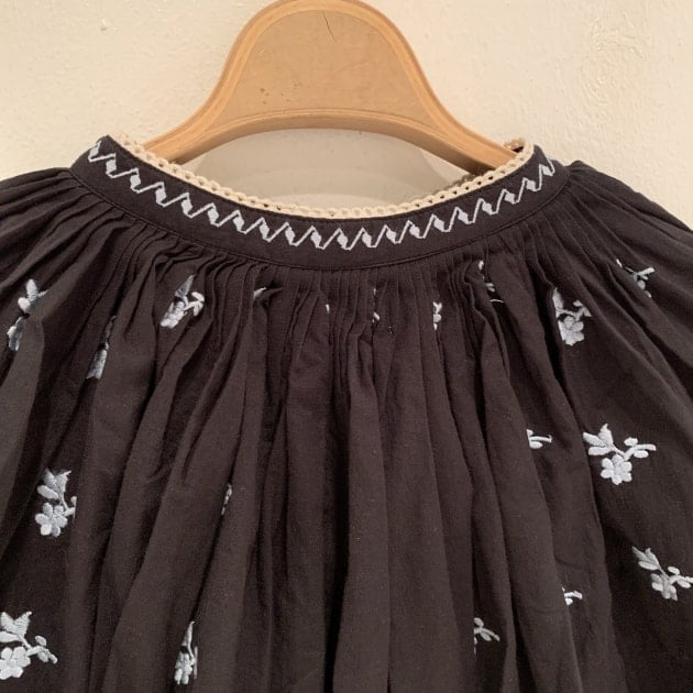 首周り、肩の部分、袖にたっぷりのギャザーが施されています。