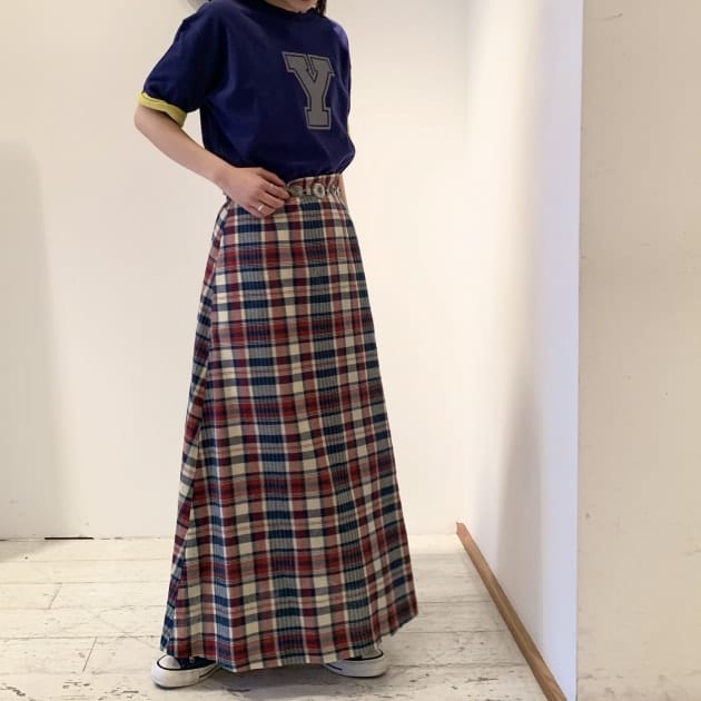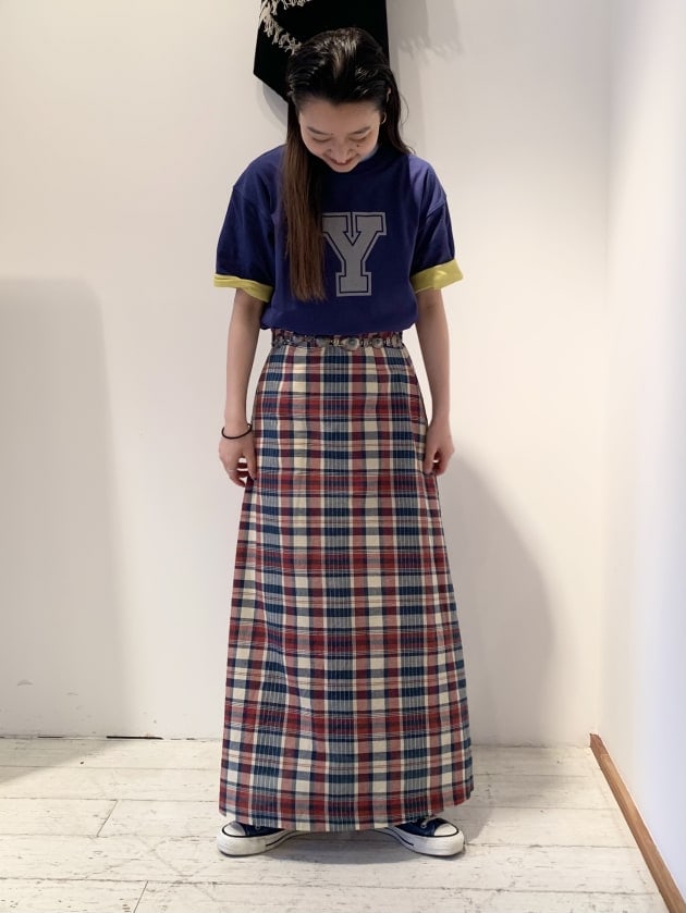 チェックのスカートと、ロゴマークTシャツの組み合わせは、やはりイイですね♡