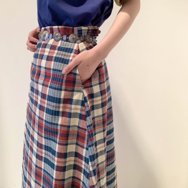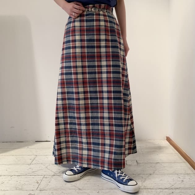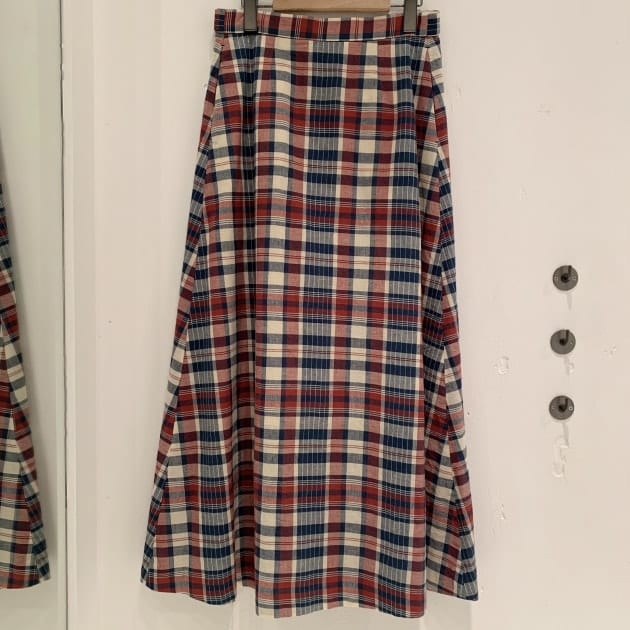 カラフルなカラーが魅力的な、マドラスチェックのAラインスカートです。