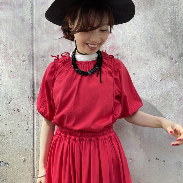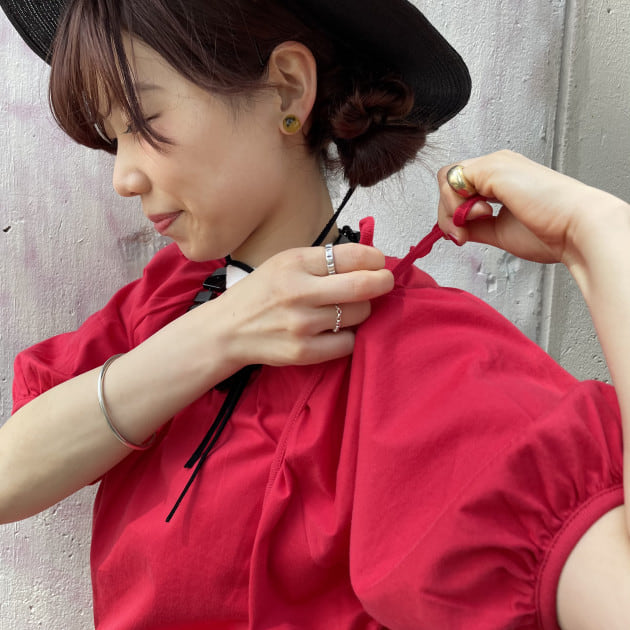 首元にしっかり入ったギャザーが女性らしい印象を引き立てます!