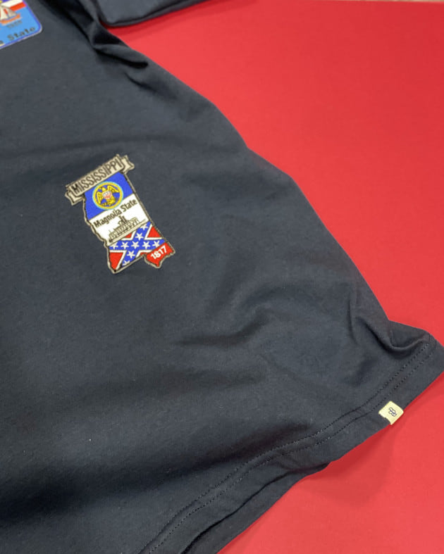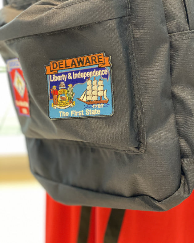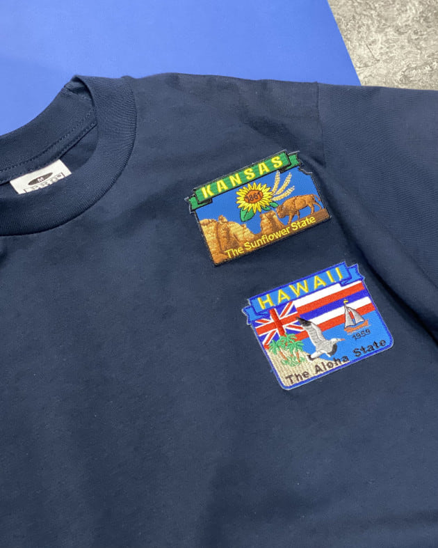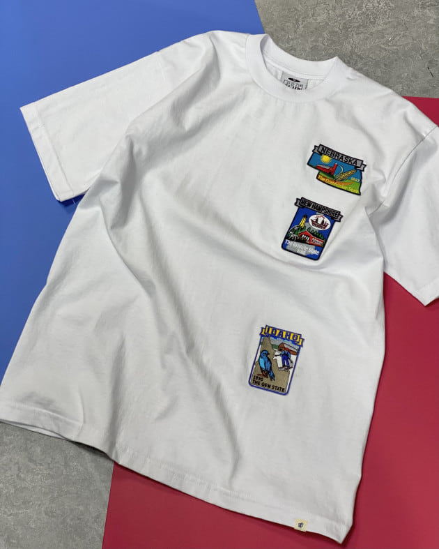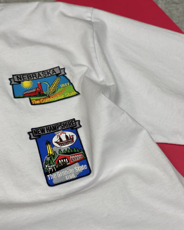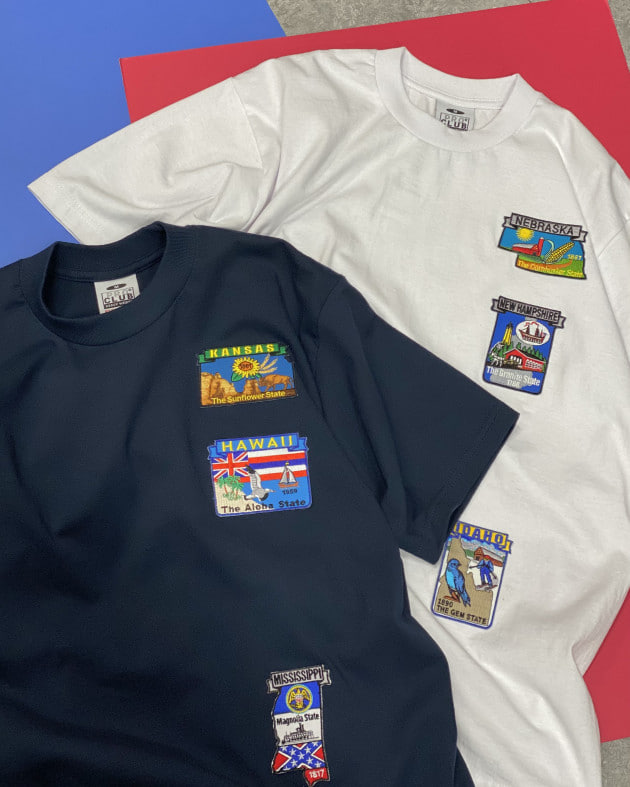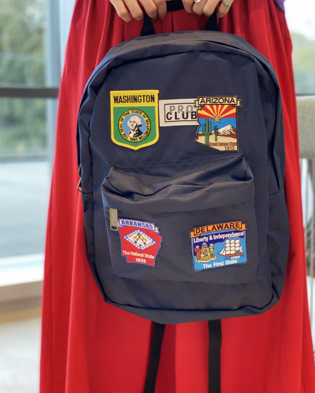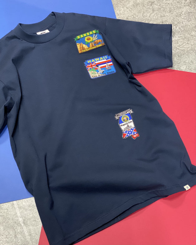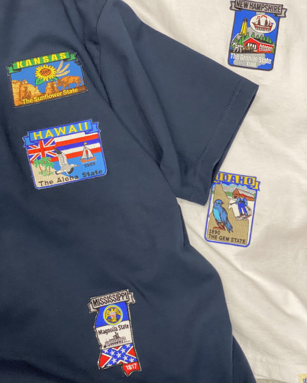 ワッペンはテーマに合わせ、アメリカの州に絞って色&柄がバランスよく見えるよう、選ばれたもの。