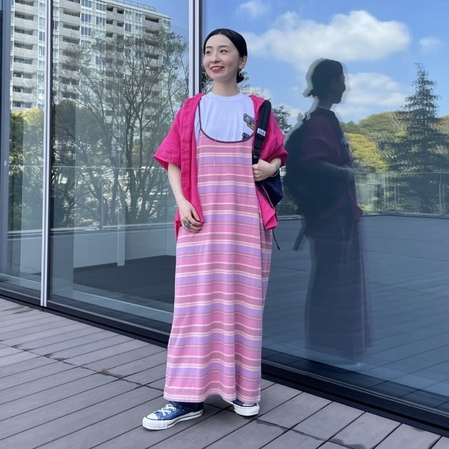 Tシャツとワンピースのボーダーがきちんと重なるんです!