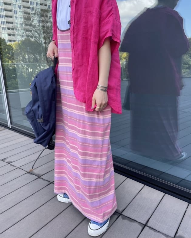 濃いピンクのシャツを羽織って、ピンクのグラデーションに♡
