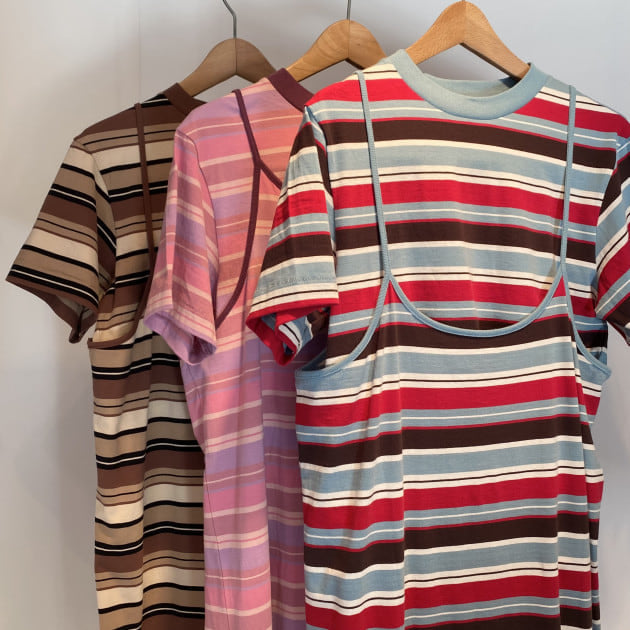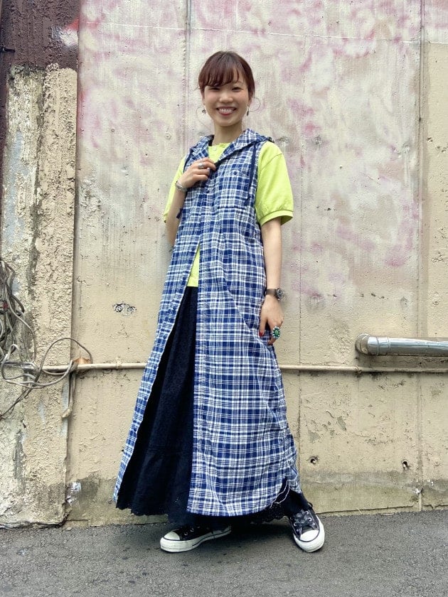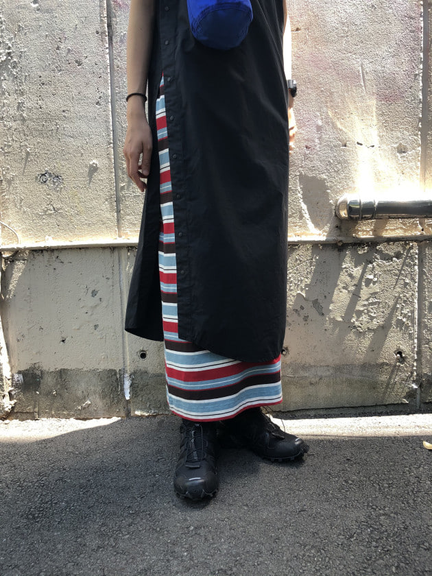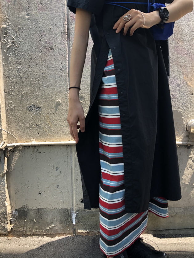 こちら、キャミソールワンピースですので、下にTシャツを重ねるのはもちろん、上からもTシャツやシャツを着たり、ベストを重ねたり、、