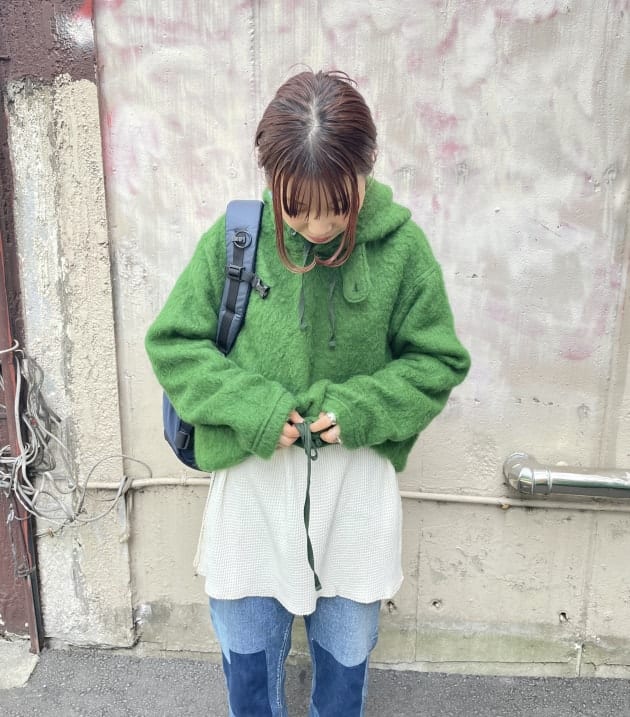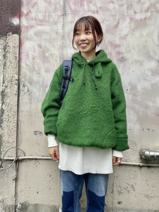 (わたしのおすすめは、グリーンのフードパーカーです♡)
