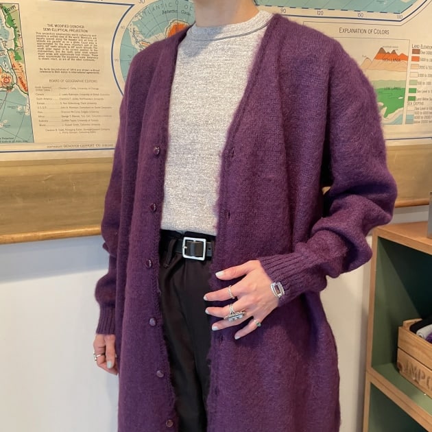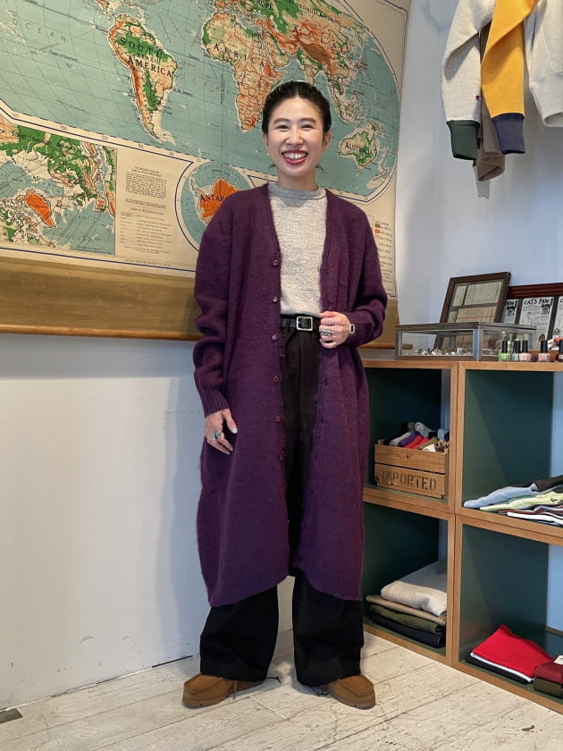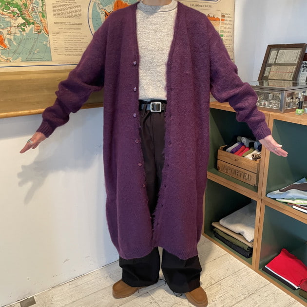 品のあるパープル。大人女子におすすめのロングカーディガンです。