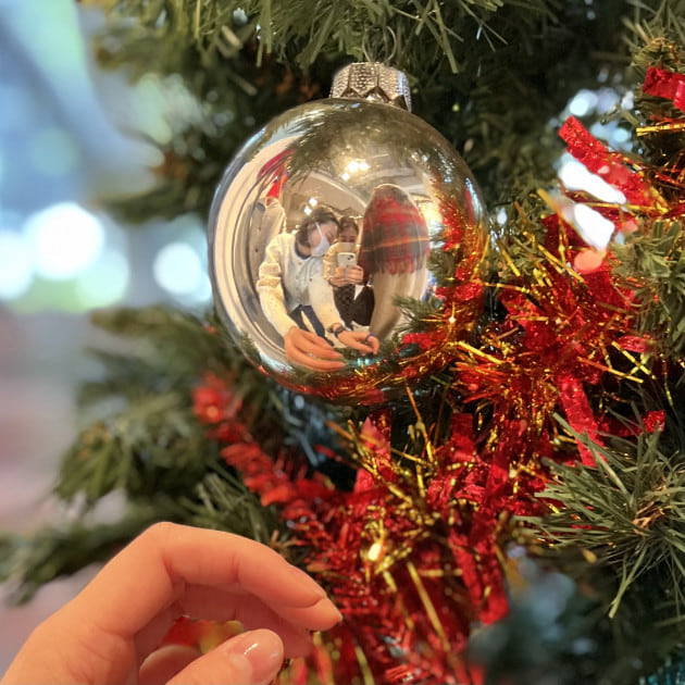 クリスマスツリーに飾られたオーナメントに、一生懸命撮ってるところが映ってました♡くすくす