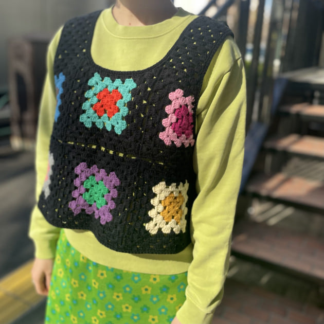 その名の通り、かぎ針で手作業で編まれているニットのタンクトップでございます。